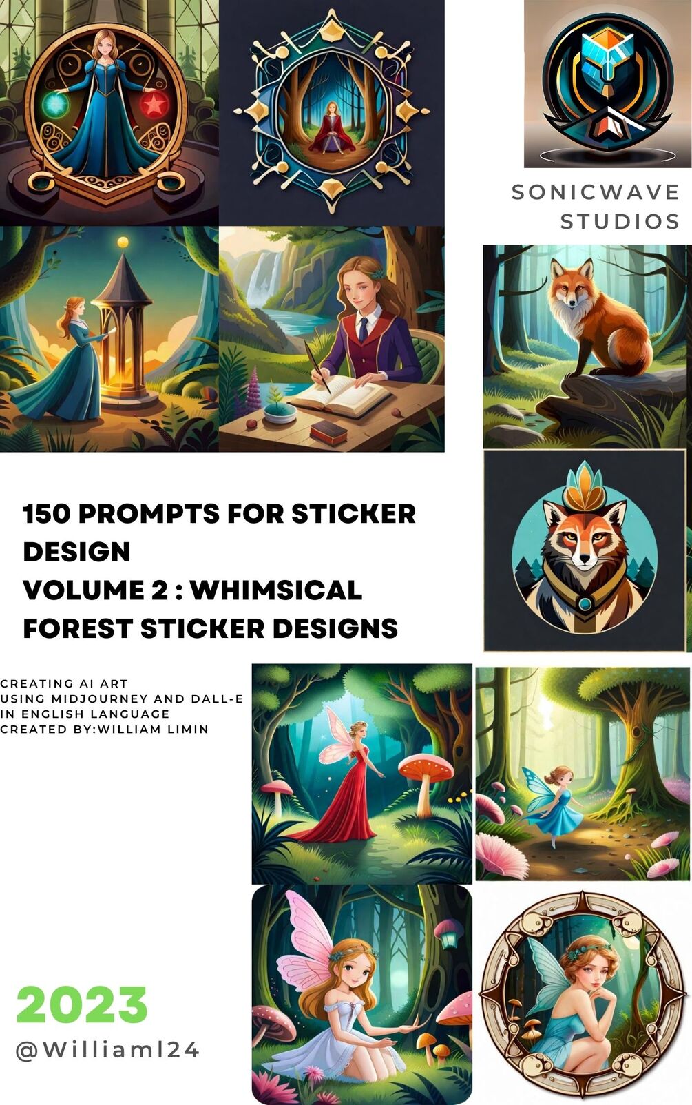 150 prompts for Sticker design Volume 2 : Whimsical Forest Sticker Designs